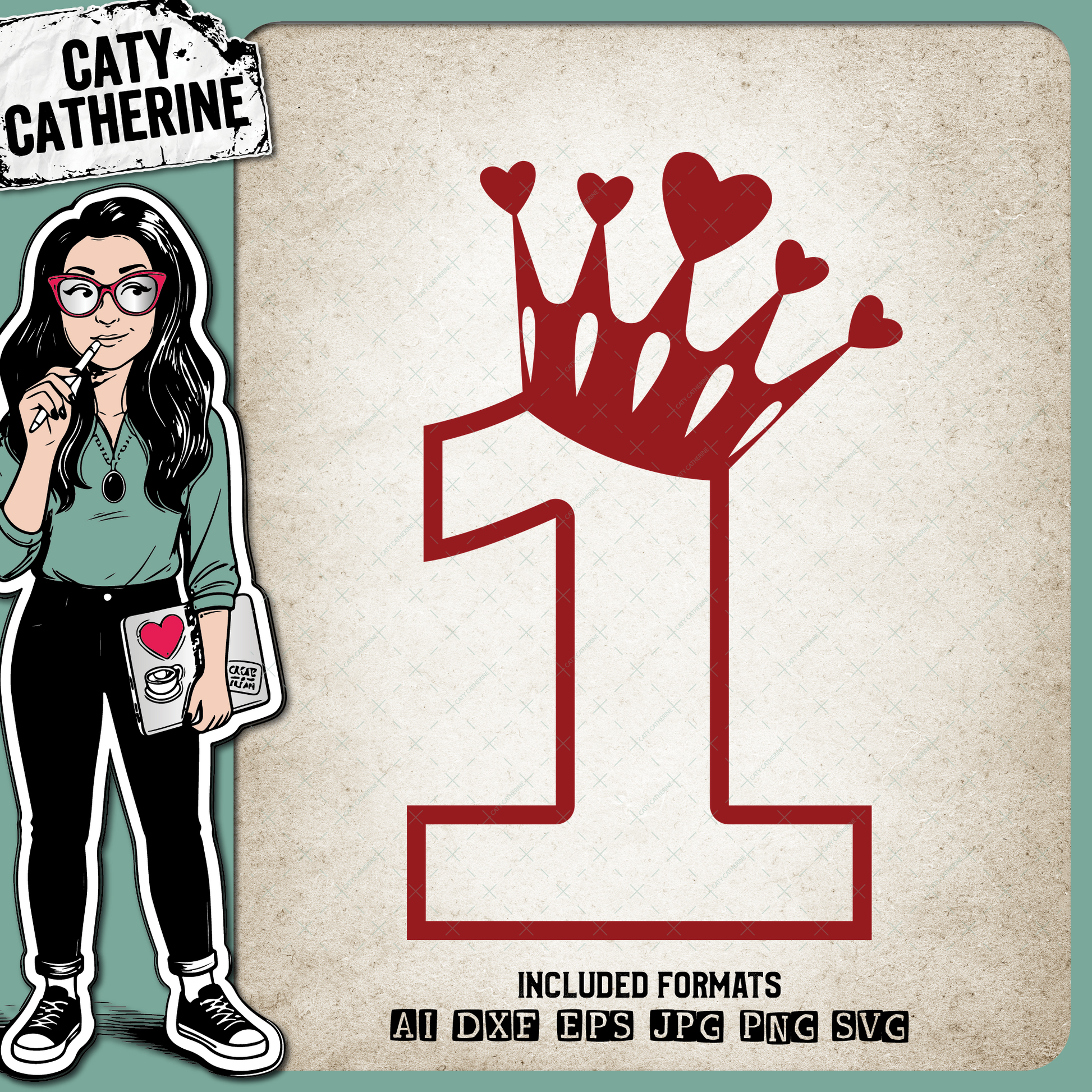 1 One Years Old Heart Crown Princess – Birthday SVG Design by Caty Catherine
