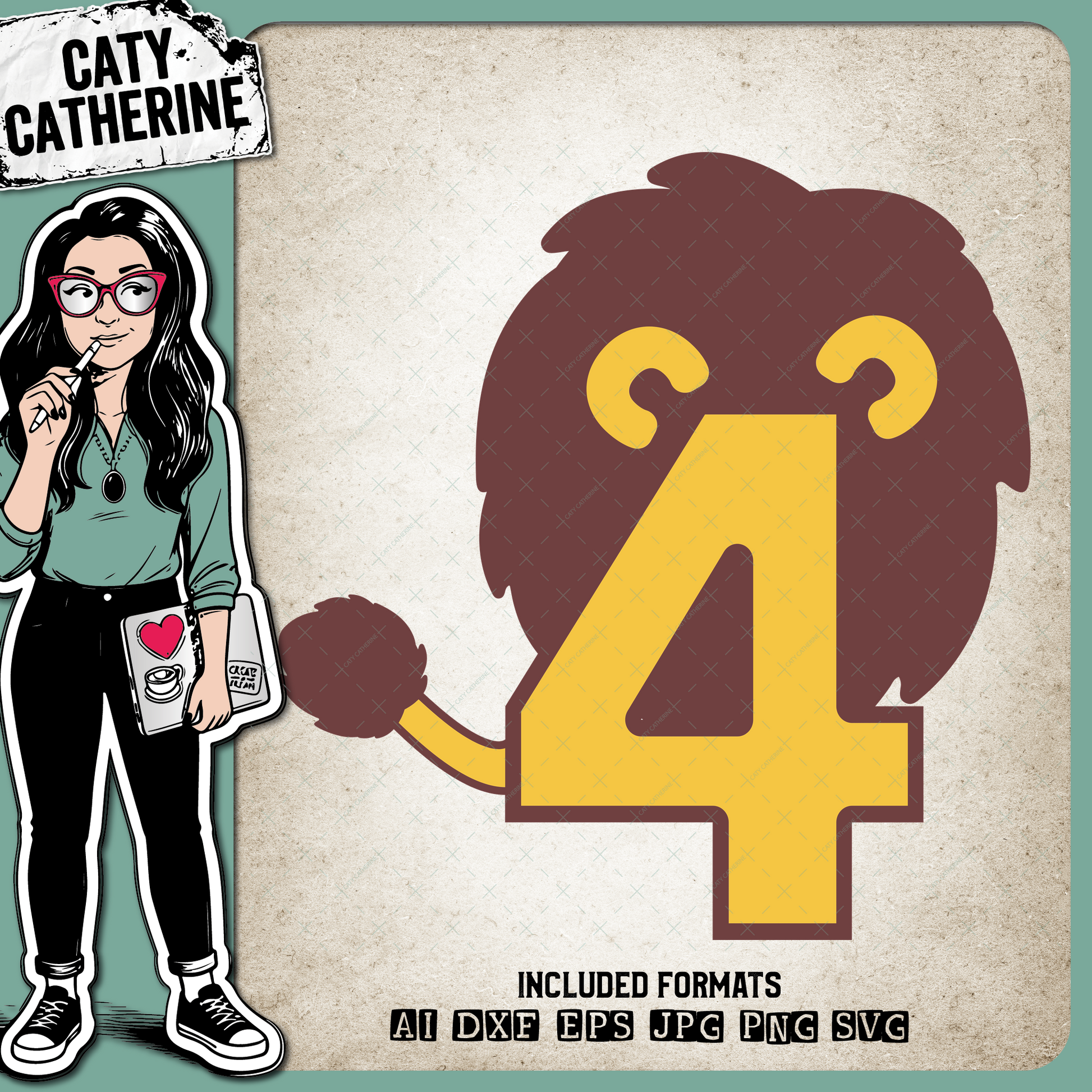 4 Four Years Old Lion Jungle Theme – Birthday SVG Design by Caty Catherine