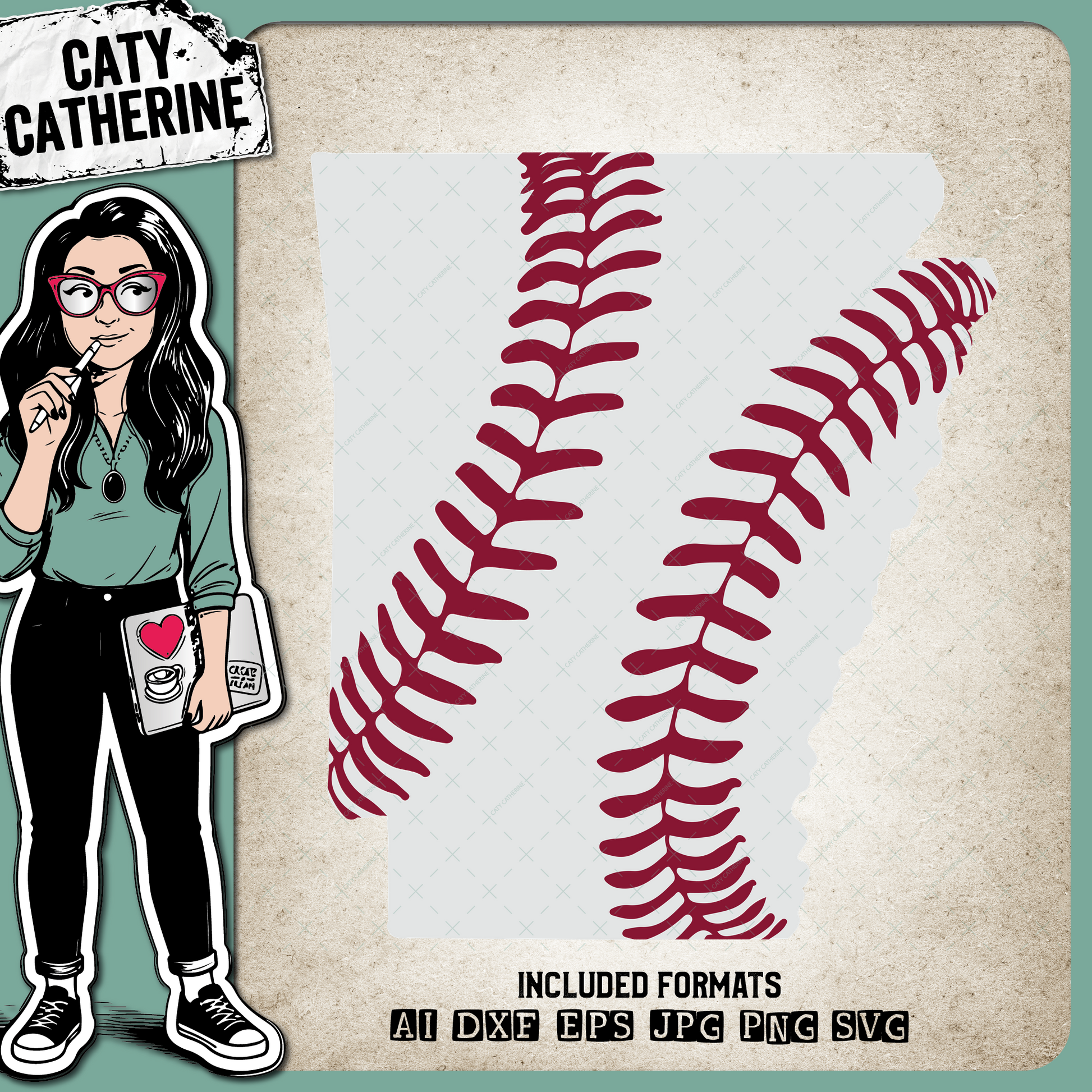 Arkansas US State Baseball Stitches – Travel SVG Design by Caty Catherine