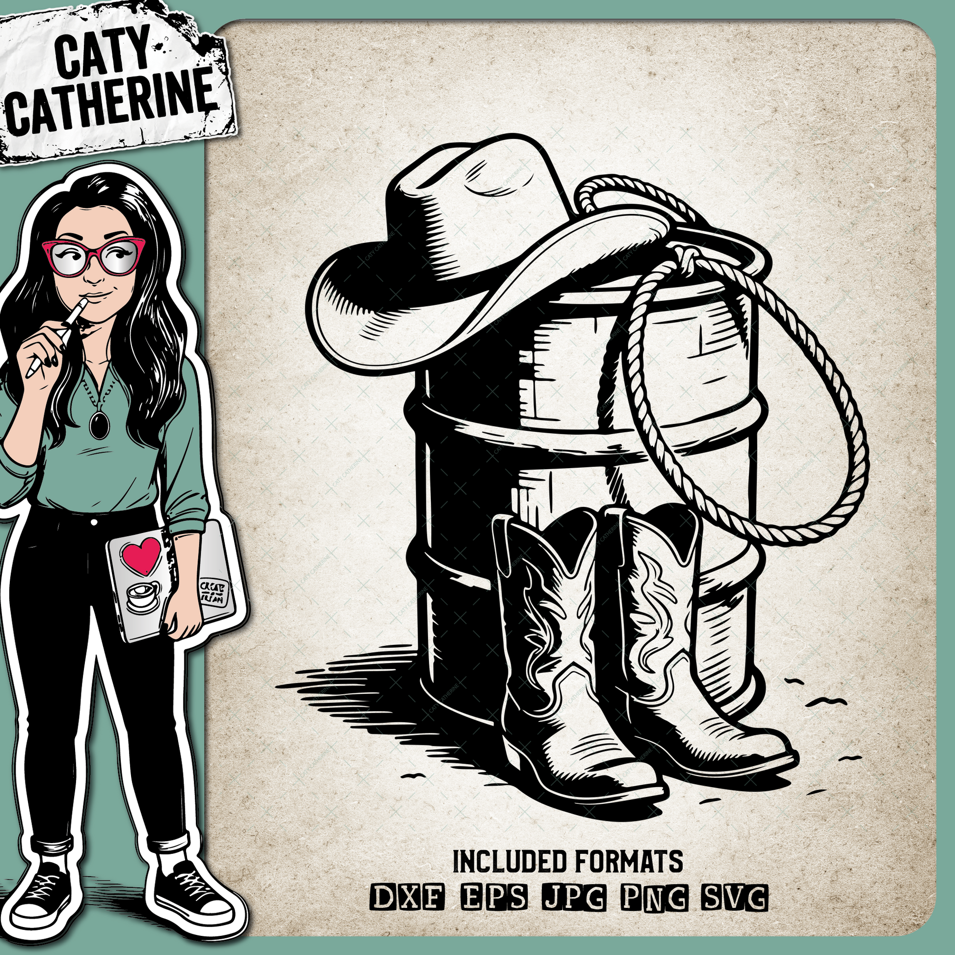 This Western SVG Design by Caty Catherine is inspired by classic western and country aesthetics, perfect for rustic and bold craft designs.