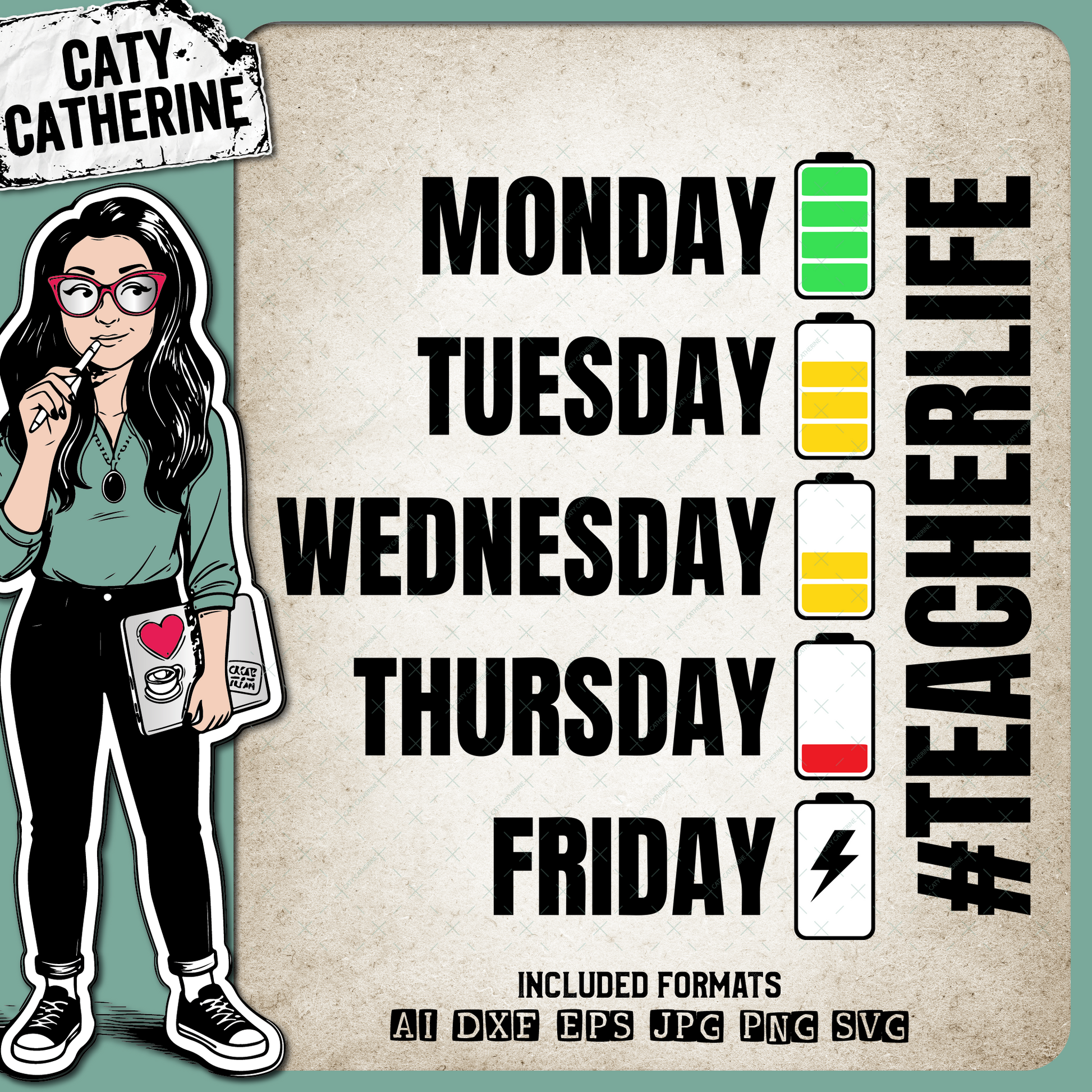 • Battery Life of a Tired Exhausted Teacher #teacherlife Funny Teaching Graphic – Occupations SVG Design by Caty Catherine