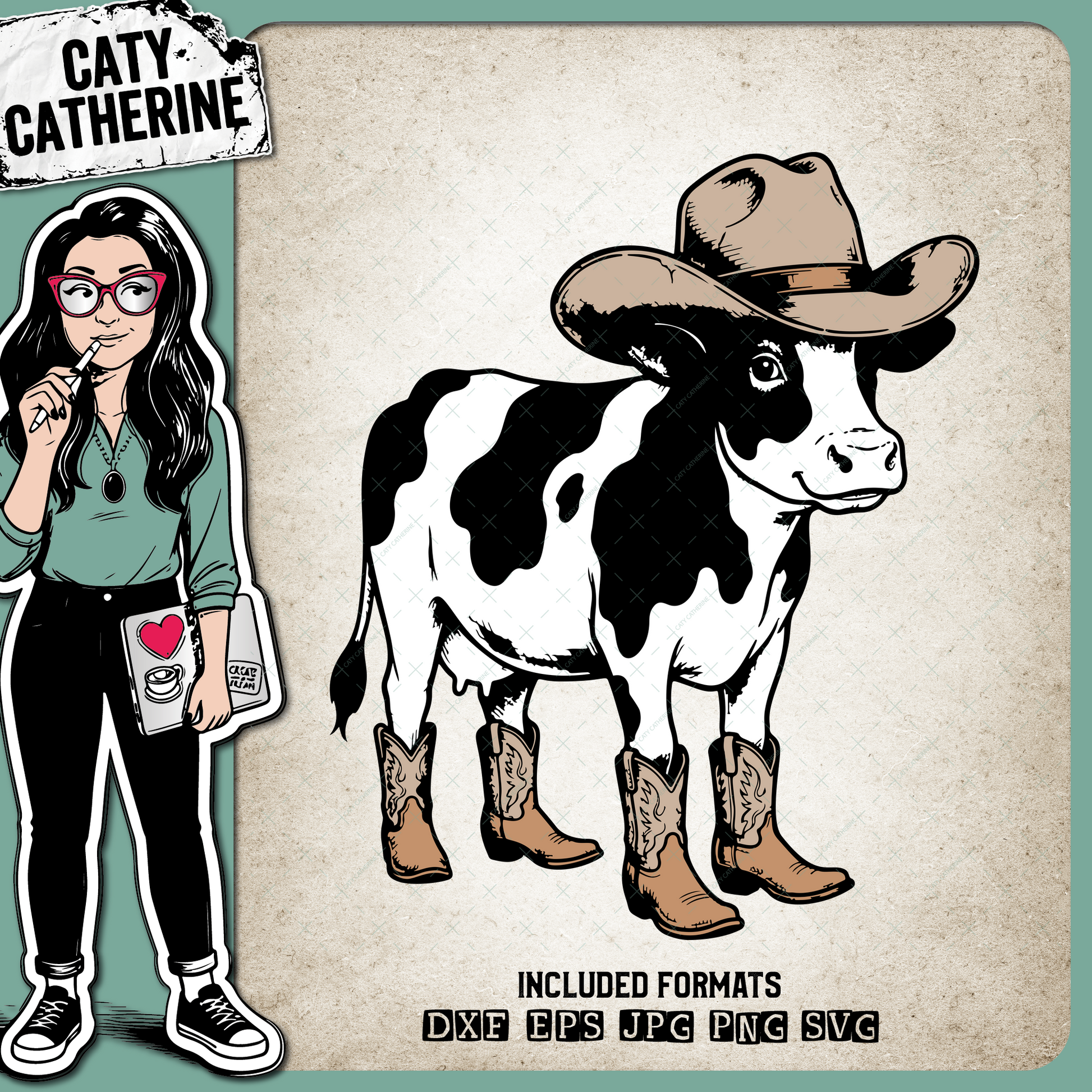 • Cow wearing Cowboy Hat & Cowboy Boots – Western SVG Design by Caty Catherine