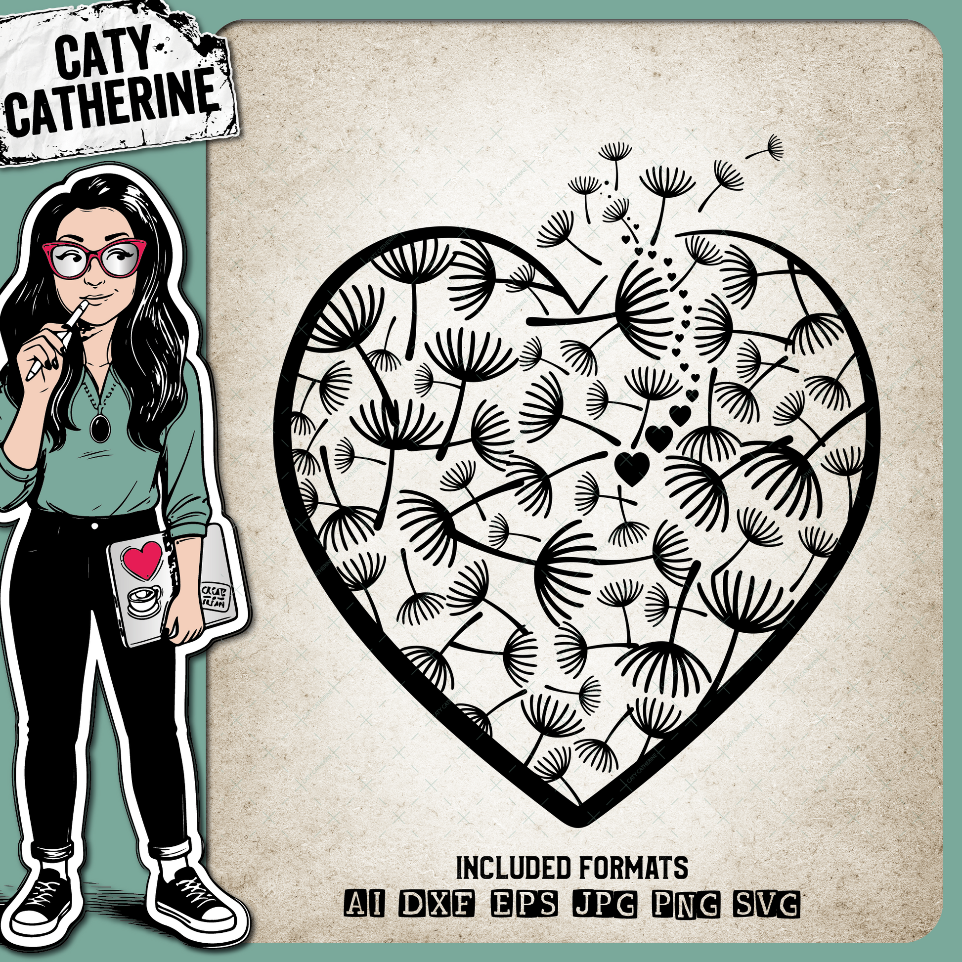 Dandelion Wish Love Heart Graphic – SVG Design by Caty Catherine