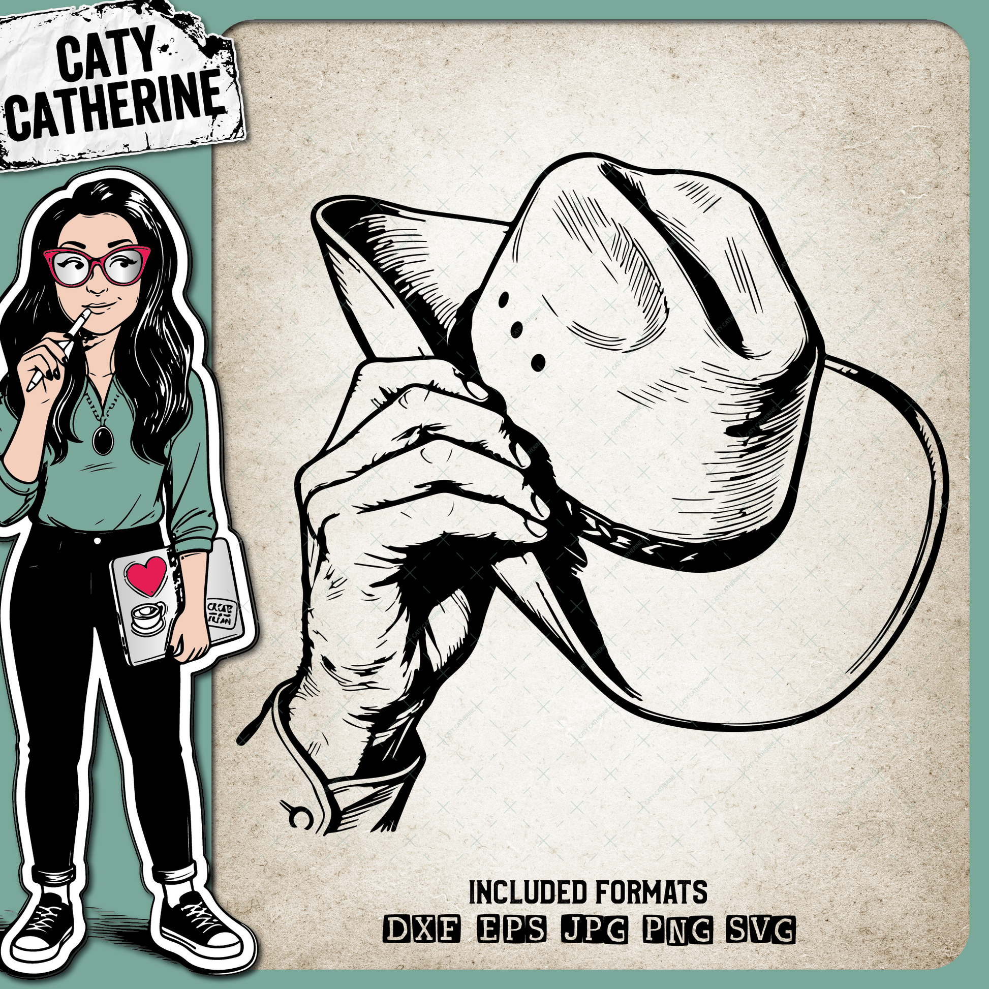 • Hand Holding Cowboy Hat – Western SVG Design by Caty Catherine