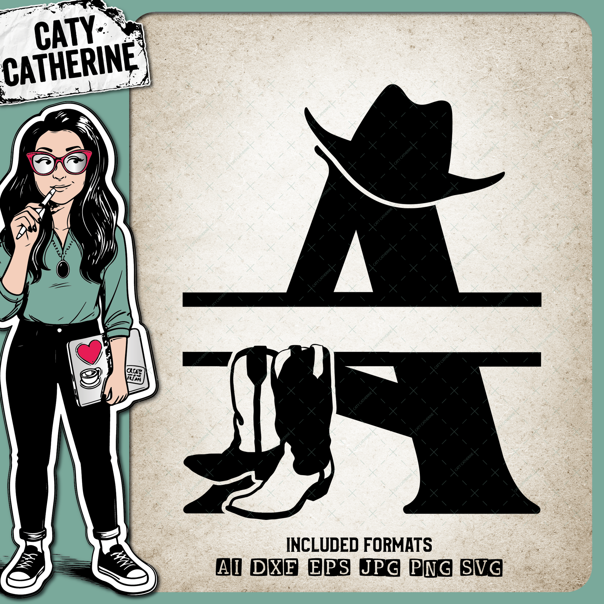 • Letter A Cowboy Monogram Includes Cowboy Boots & Cowboy Hat – Monograms SVG Design by Caty Catherine