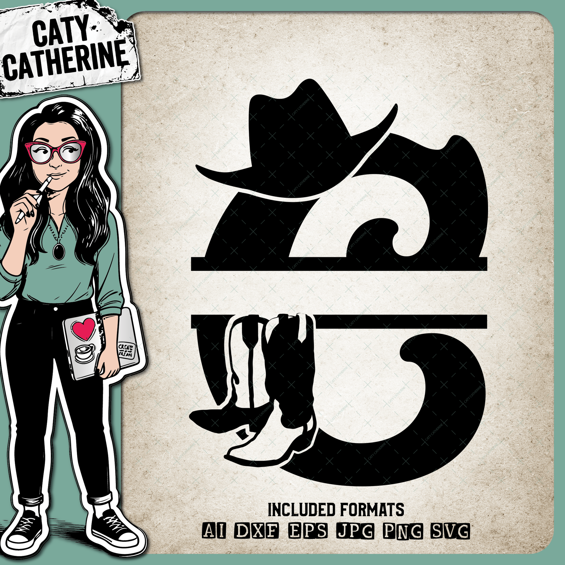 Letter C Cowboy Monogram Includes Cowboy Boots & Cowboy Hat – Monograms SVG Design by Caty Catherine