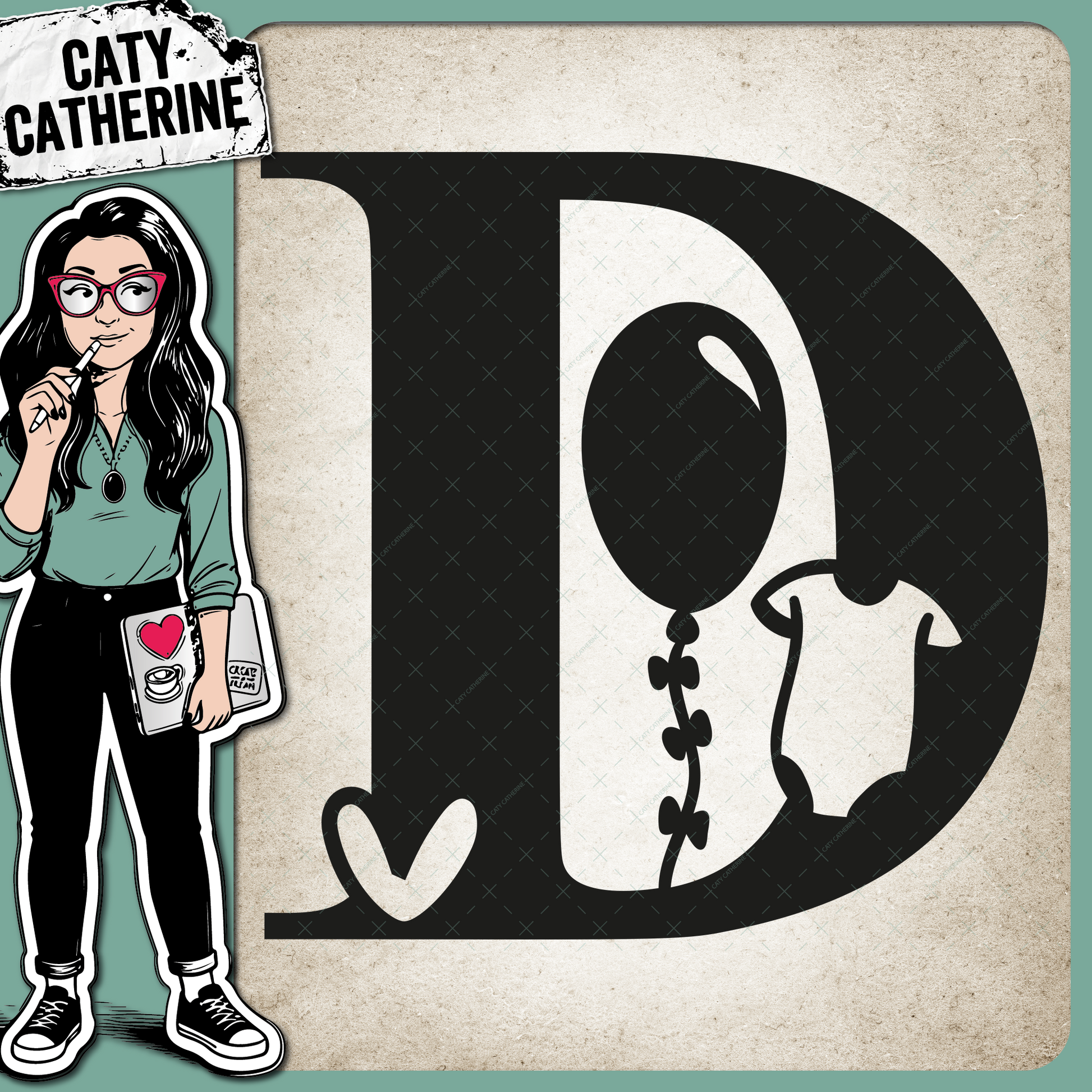 • Letter D Newborn Baby Monogram Includes Love Heart BabyGrow Balloon – Monograms SVG Design by Caty Catherine