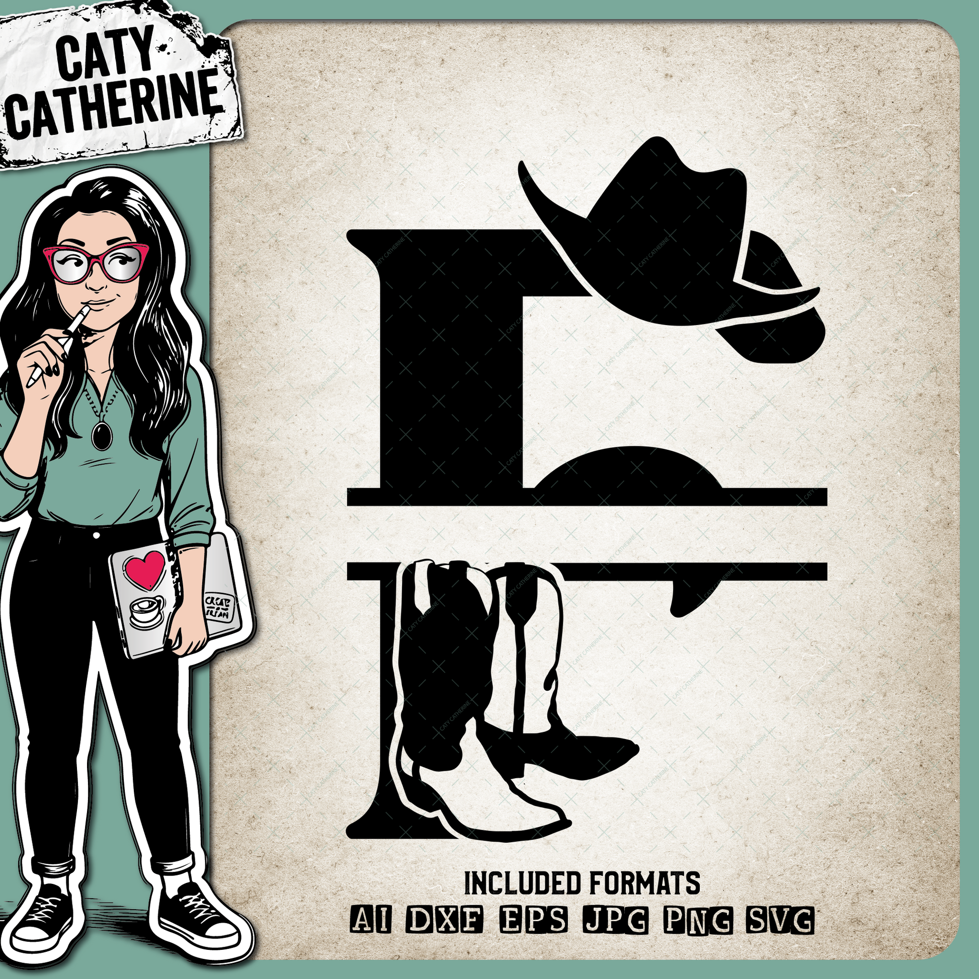 • Letter F Cowboy Monogram Includes Cowboy Boots & Cowboy Hat – Monograms SVG Design by Caty Catherine