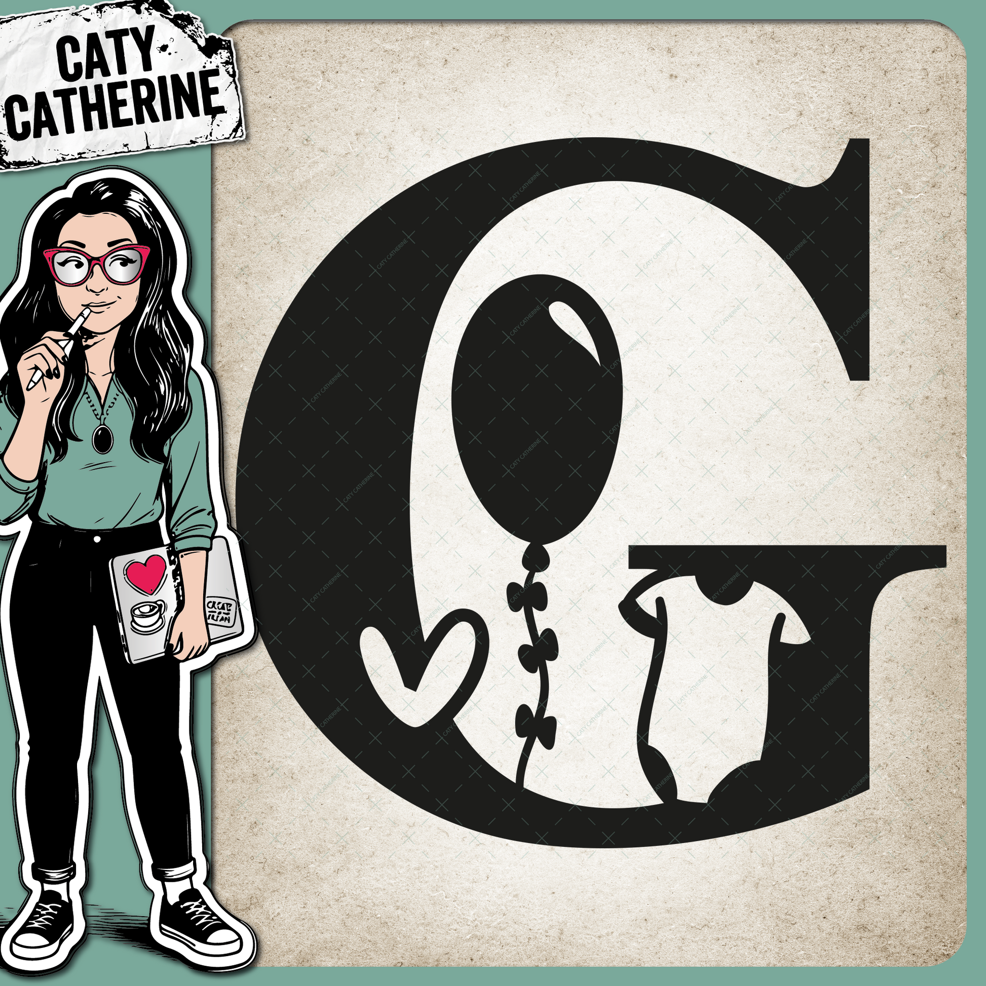 • Letter G Newborn Baby Monogram Includes Love Heart BabyGrow Balloon – Monograms SVG Design by Caty Catherine