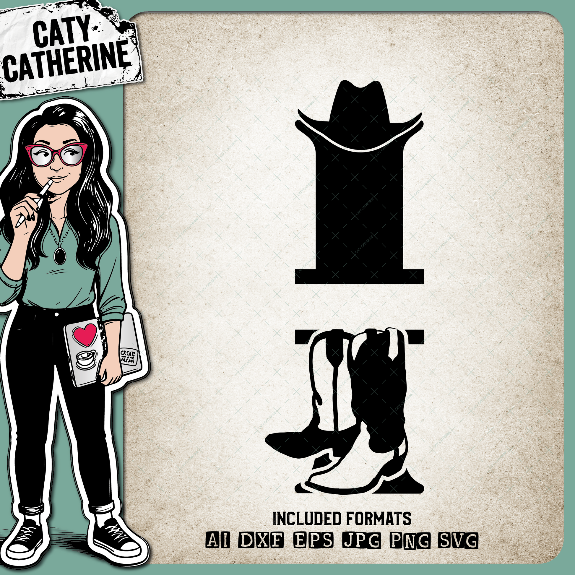 • Letter I Cowboy Monogram Includes Cowboy Boots & Cowboy Hat – Monograms SVG Design by Caty Catherine