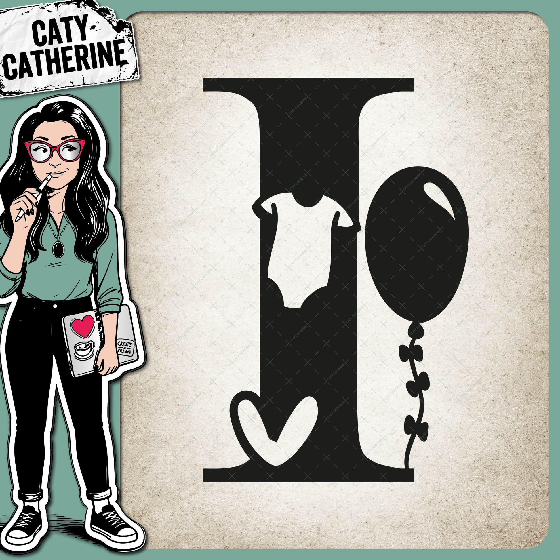 • Letter I Newborn Baby Monogram Includes Love Heart BabyGrow Balloon – Monograms SVG Design by Caty Catherine