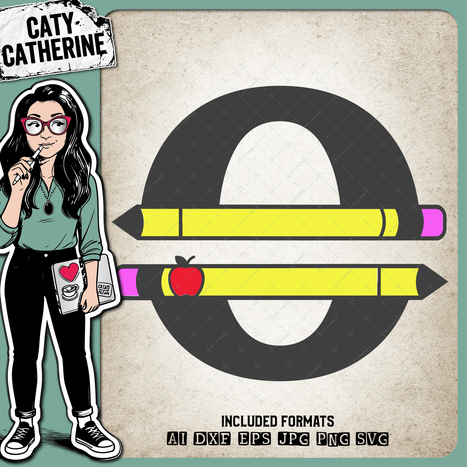 Letter O Split Teacher Monogram with Pencil and Apple Detail – Monograms SVG Design by Caty Catherine