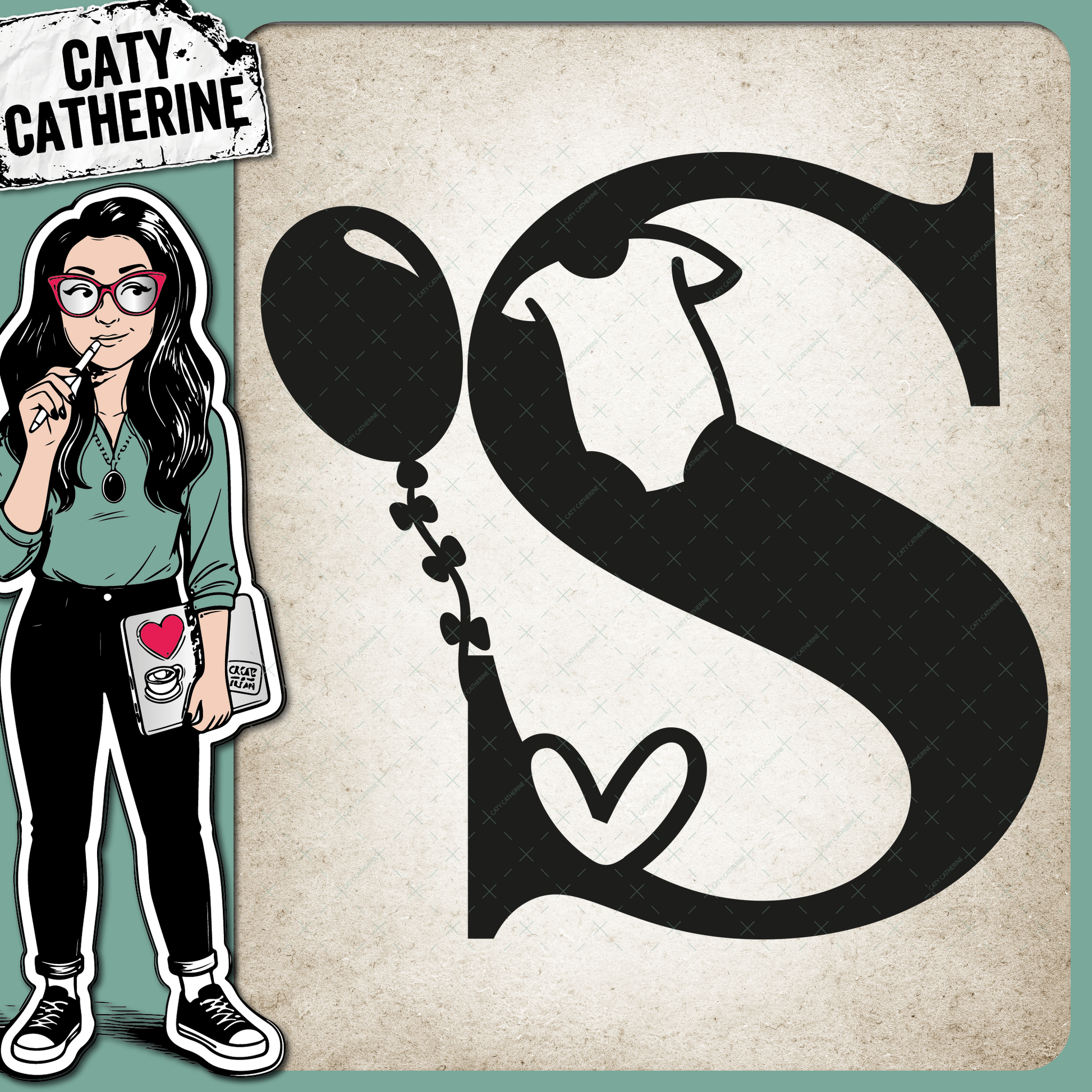 • Letter S Newborn Baby Monogram Includes Love Heart BabyGrow Balloon – Monograms SVG Design by Caty Catherine