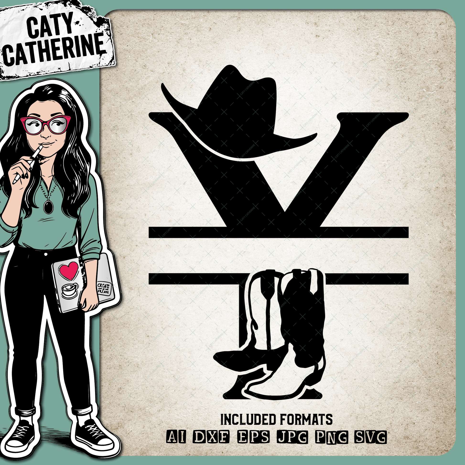 • Letter Y Cowboy Monogram Includes Cowboy Boots & Cowboy Hat – Monograms SVG Design by Caty Catherine