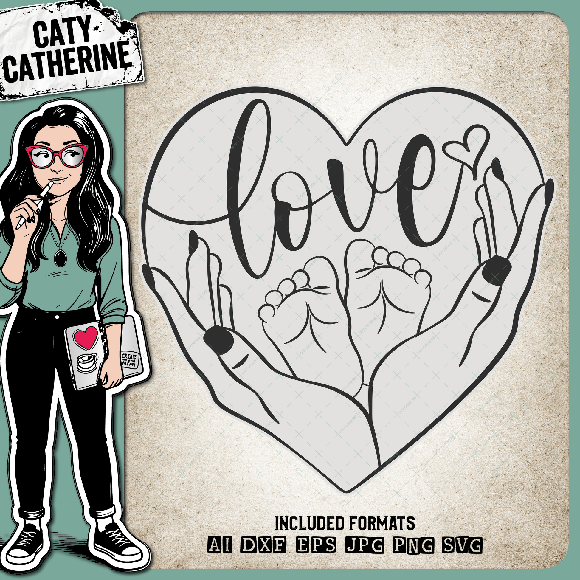 • Love Heart with Women's Mom Mum Hands and Baby Feet Pregnancy Childbirth – SVG Design by Caty Catherine