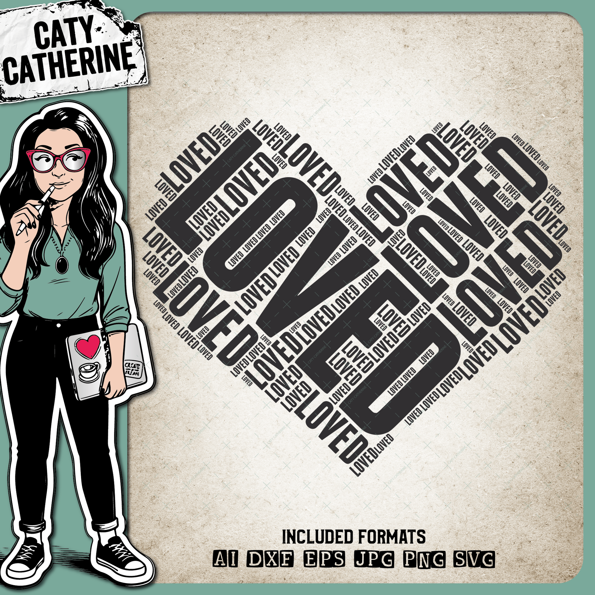 Loved Word Art Love Heart Collage – SVG Design by Caty Catherine
