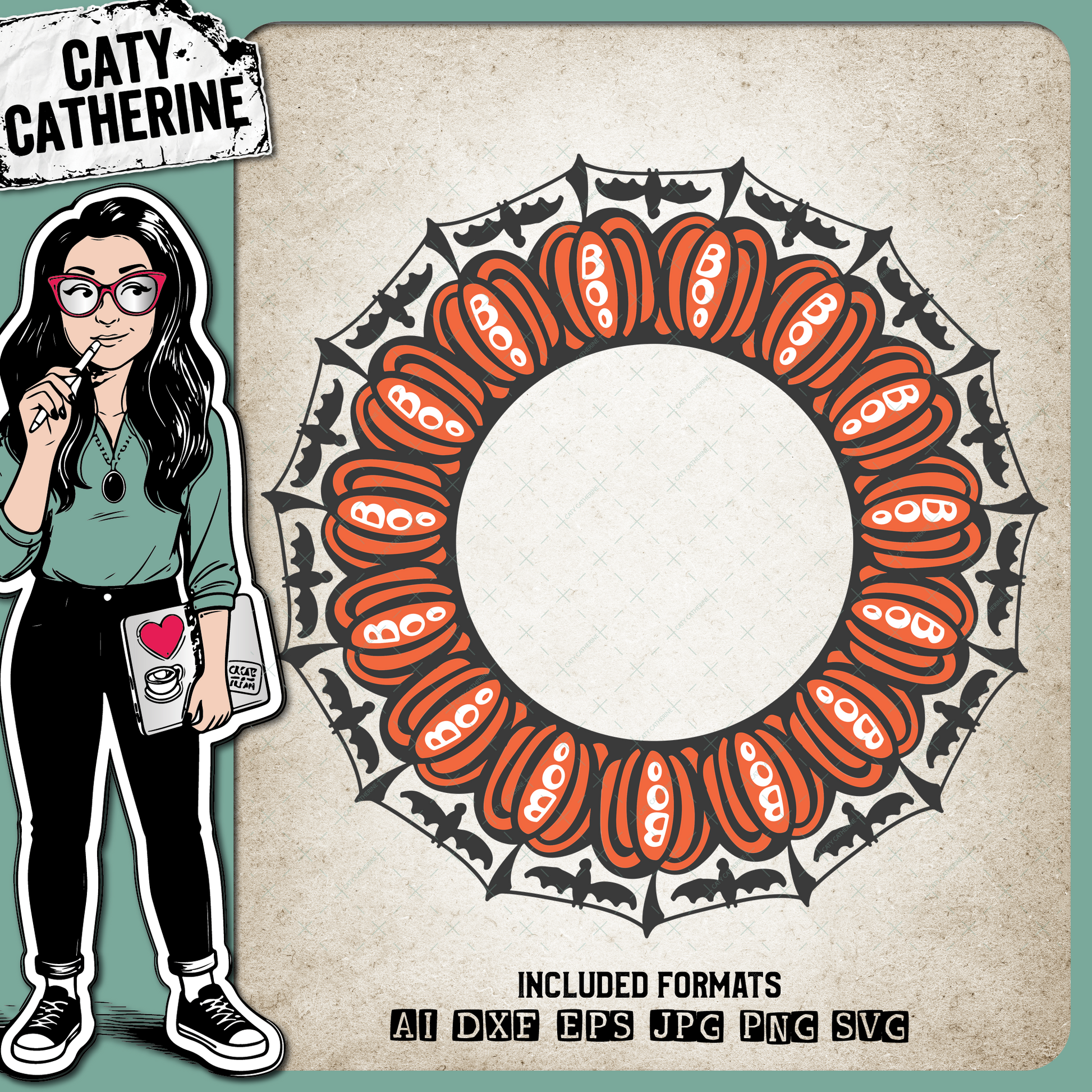 Pumpkin with Bats and Boo Monogram Frame Halloween – Monograms SVG Design by Caty Catherine