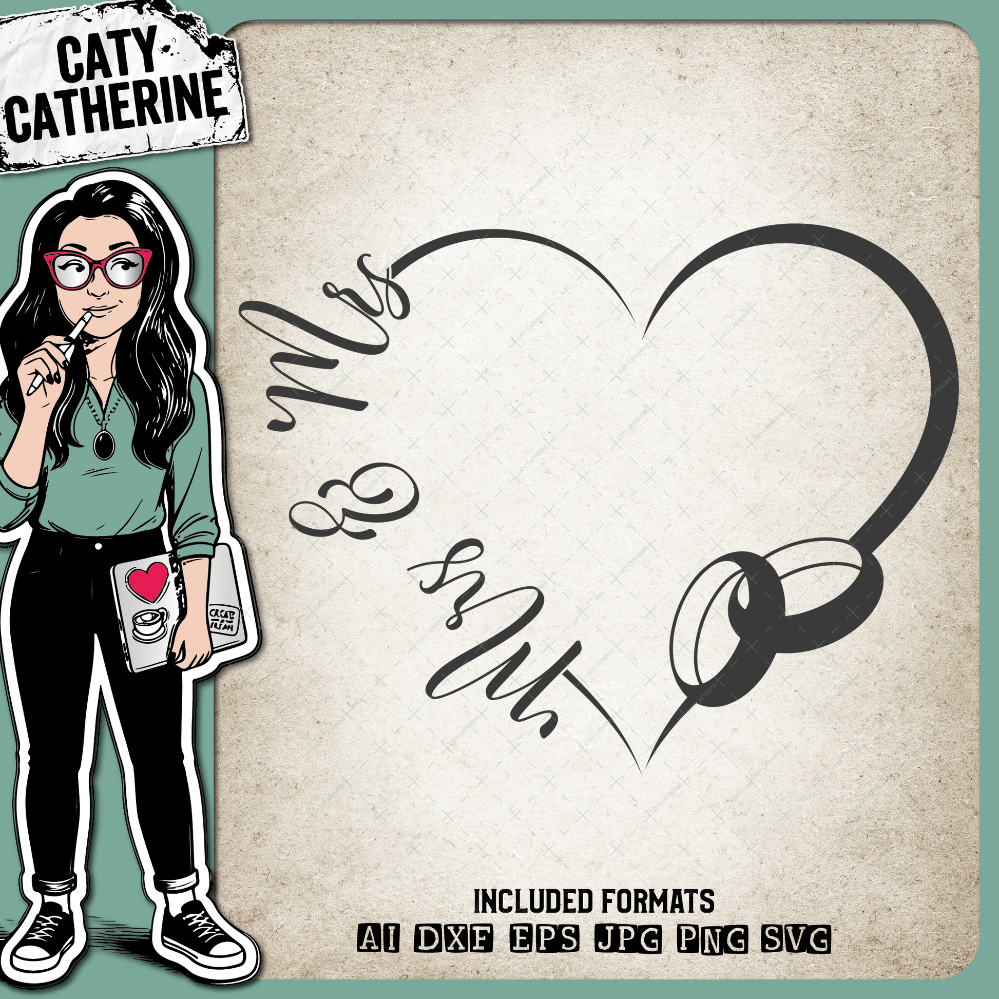 Wedding Love Heart Frame with Rings Mrs and Mrs – SVG Design by Caty Catherine