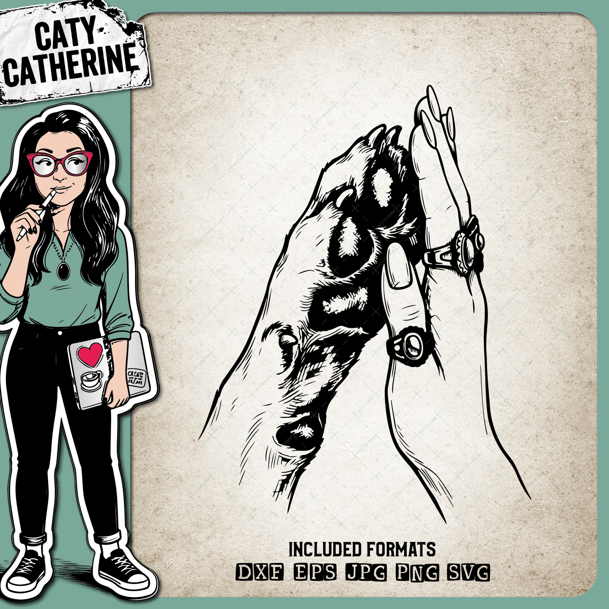 Woman's Hand wearing Rings High Five Dog Paw – Pets & Animals SVG Design by Caty Catherine