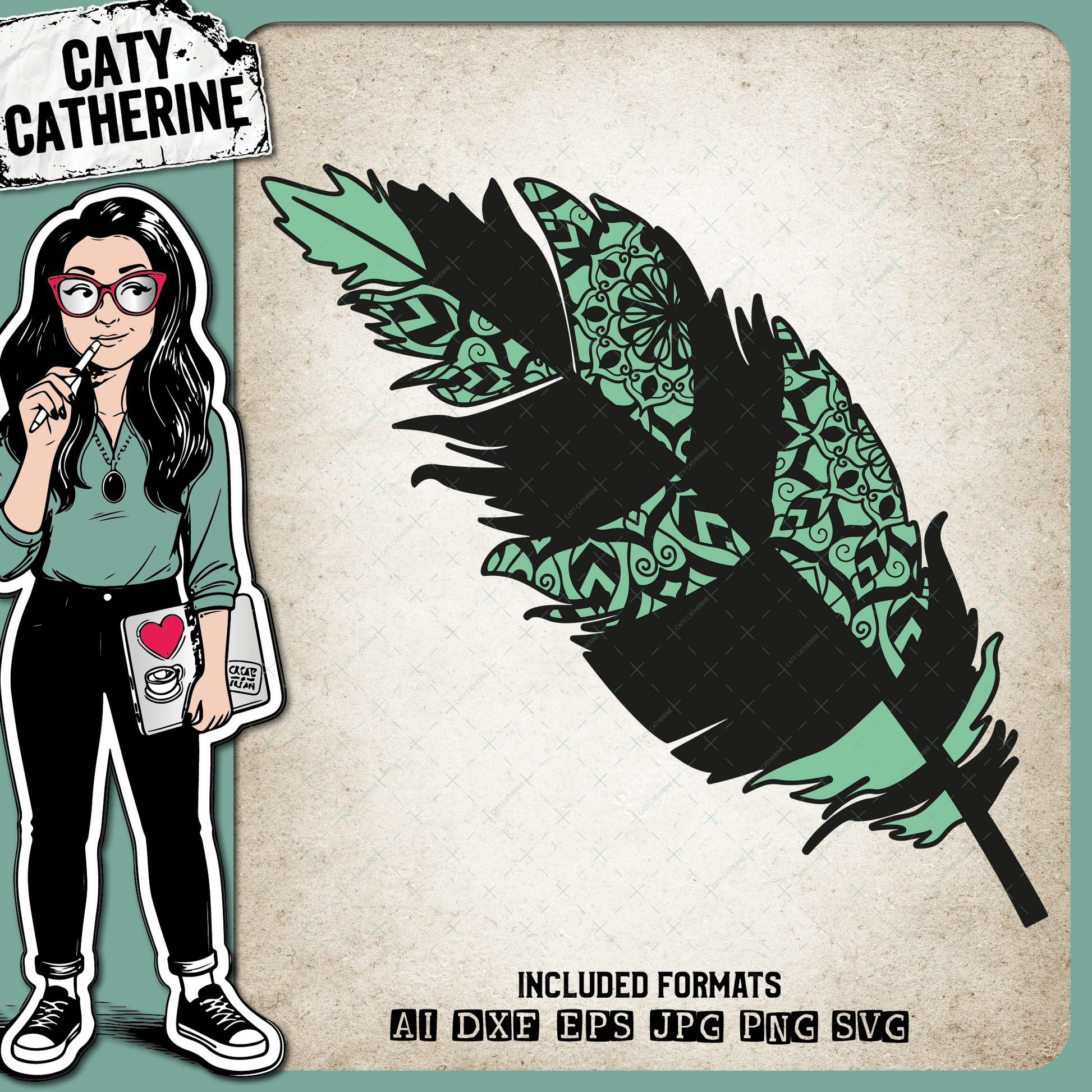 Zentangle Boho Feather – Western SVG Design by Caty Catherine